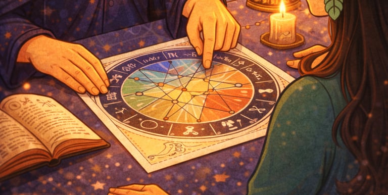 Étude personnalisée de votre thème pour éclairer vos relations amoureuses.